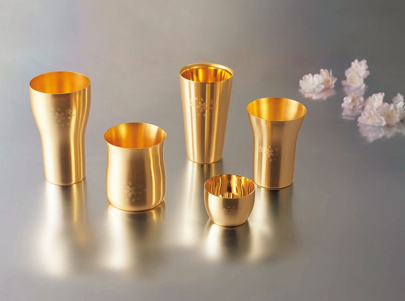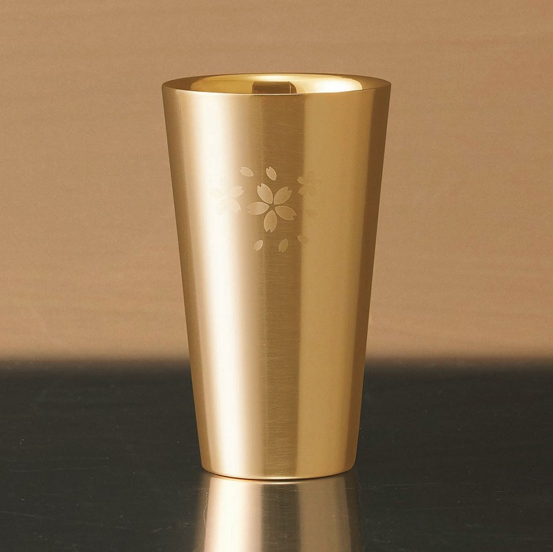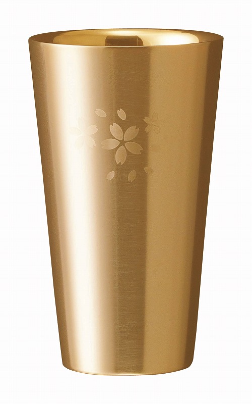 内面底の特殊形状と研磨が対流を良くさせビールの泡をクリーミーにさせます。更に、内面底の角が丸く洗い易くなっています。側面サテン仕上のステンレスタンブラーを高級感漂う金メッキを施し、桜の花びらで飾りました。金メッキは金属臭を感じさせない為、口当たりが良く、飲み物を美味しくいただけます。また抗菌性にも優れていますので安心してご使用できます。