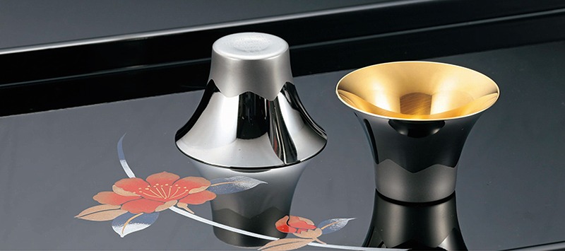富士の頂きに 想いを馳せ 酌み交わす 酒に酔いしれず たゆたう時間を 慈しまんと /伏せると富士山が姿を現します。
