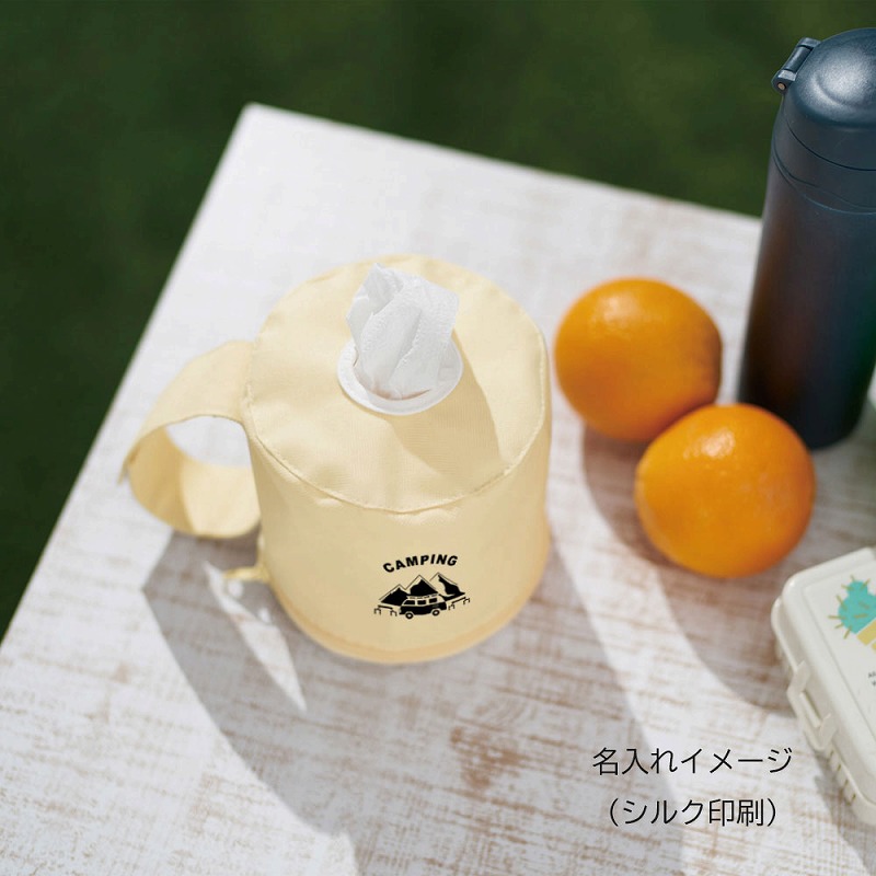 アウトドアや車内でトイレットペーパーを使いやすく。ストラップでいろんな場所に取り付けられます。