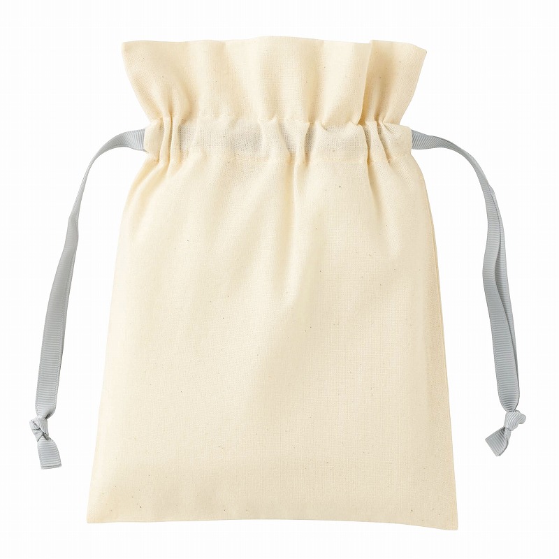 ”名入れ ロゴ入れ オリジナル” 『コットンカラーリボン巾着(S) グレー』