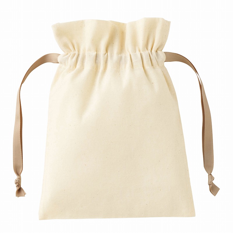 コットンカラーリボン巾着(S) ベージュ
