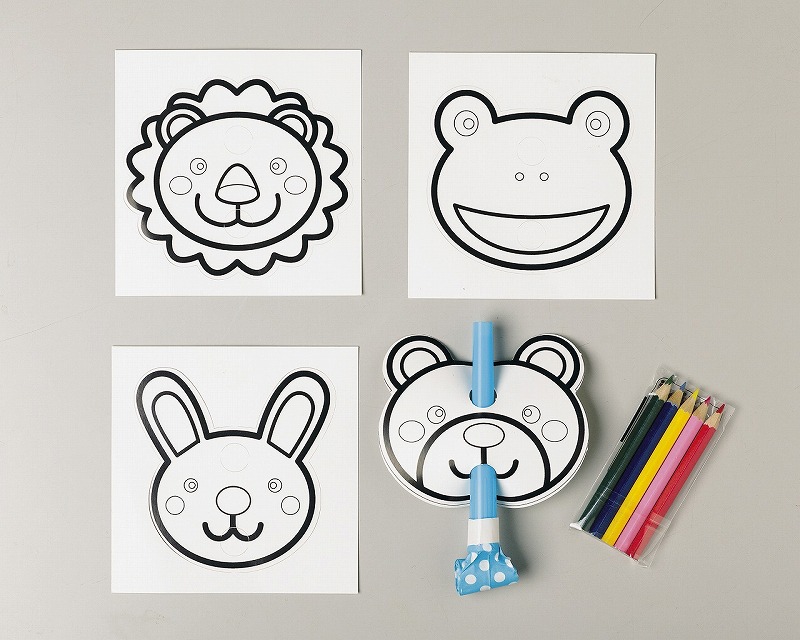 お面4枚・吹き戻し1本・色鉛筆5本入り