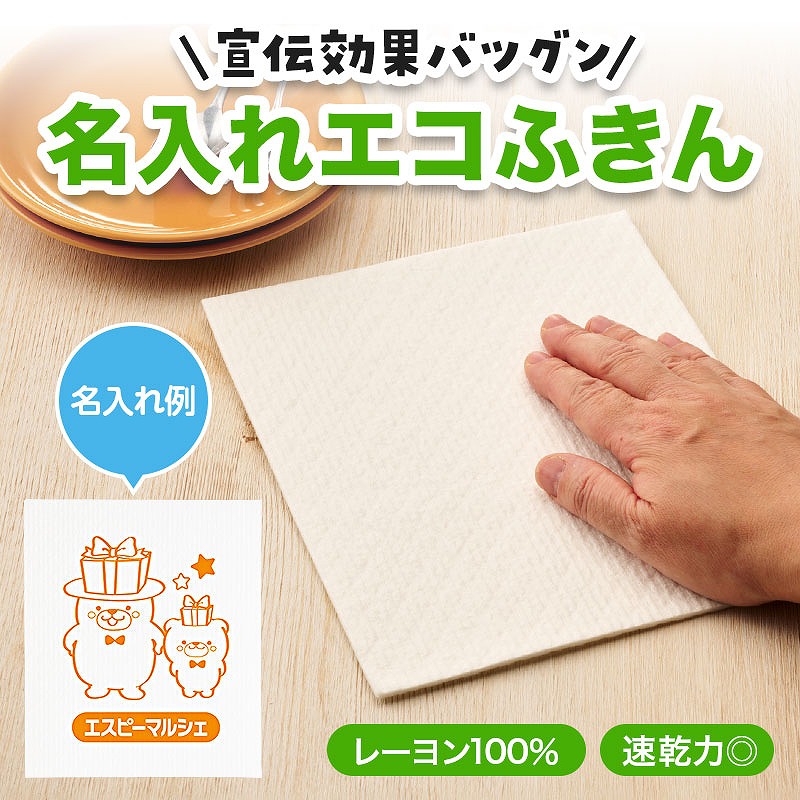 毎日のキッチンで役立つ実用的なアイテムなので、長く使っていただきながらPR効果も期待できます。 北欧で人気の「エコふきん」は、吸水性と速乾性に優れたレーヨン素材のふきんです。 水分をしっかり吸収しながら乾きやすく、衛生的にお使いいただけます。 ご使用の際は、まず水で濡らして軽くしぼってから使うことで吸水力がさらにアップします。 ふきんとしてはもちろん、水切りマットやコースターとしても使え、毎日の家事で幅広く活躍します。