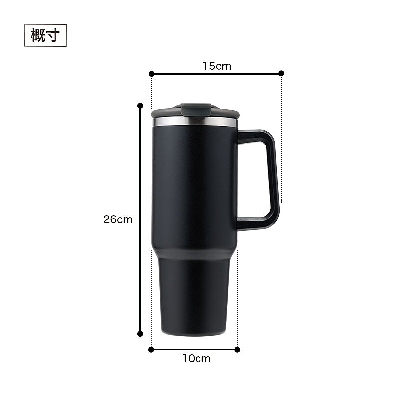 Z世代を中心にSNSから人気が広がり、ミレニアル世代や子育て世代など幅広い層にも注目されているトレンド感のあるアイテムです。 真空二重構造のステンレス製で、保冷・保温機能もしっかり。 JIS規格に適合したステンレス鋼(SUS304)を使用しており、錆びにくく安心してお使いいただけます。 フタは直飲みとストローの2way仕様で、シーンに合わせて使い分けが可能。 ハンドル付きで持ちやすく、底の径が細くなっているため車のドリンクホルダーにも収まりやすい設計です。 ジムやアウトドア、日常使いなどさまざまな場面で活躍します。 名入れにも対応しており、企業ロゴや学校名などを印刷すればオリジナルタンブラーとして活用できます。 周年記念や卒業記念、入会特典などのノベルティにもおすすめです。
