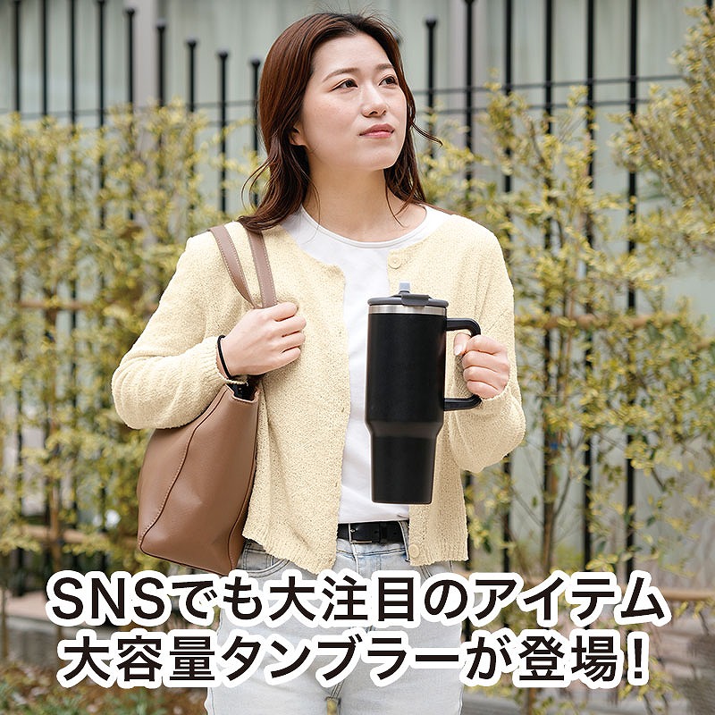 SNSで話題となり人気を集めている、大容量タイプの真空ステンレスタンブラーです。 シンプルでスタイリッシュなデザインと、たっぷり入る1.2Lサイズが特長。