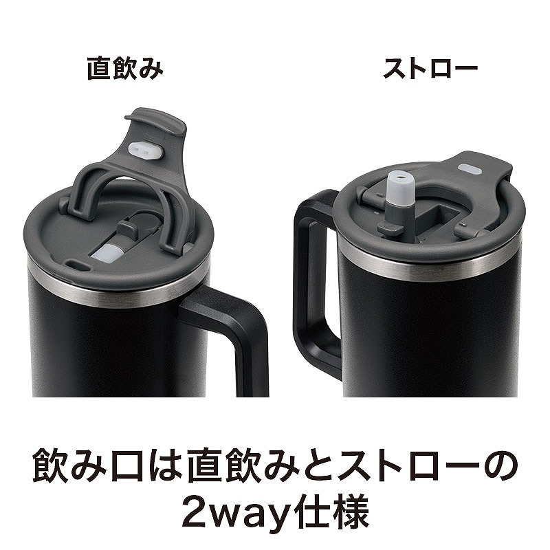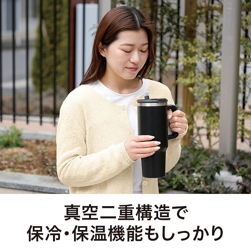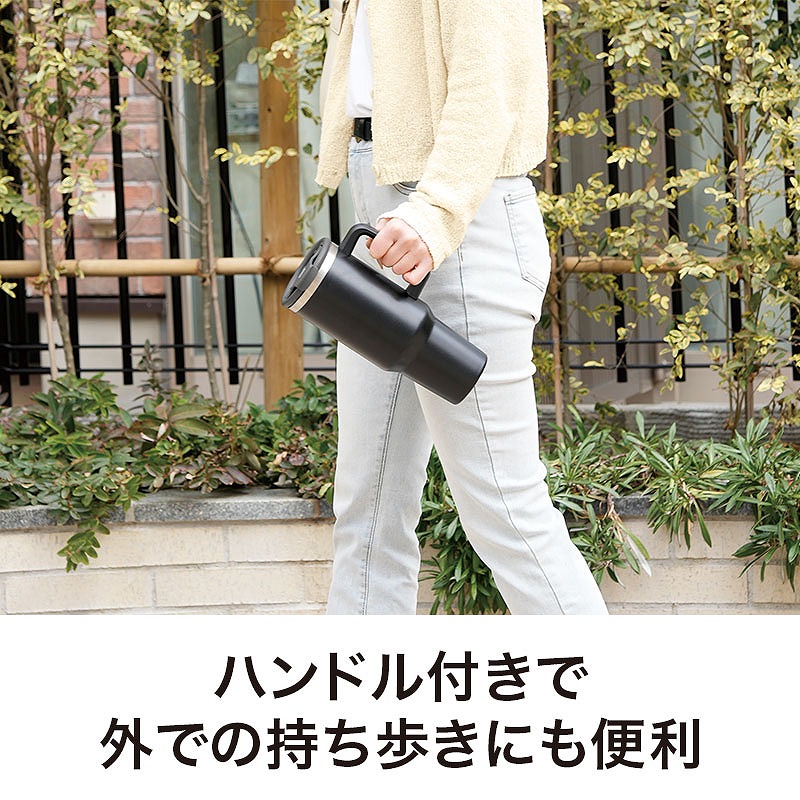 カラモ ハンドル付き真空ステンレスビッグタンブラー 1.2L ブラック