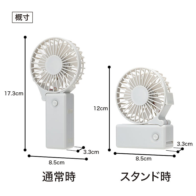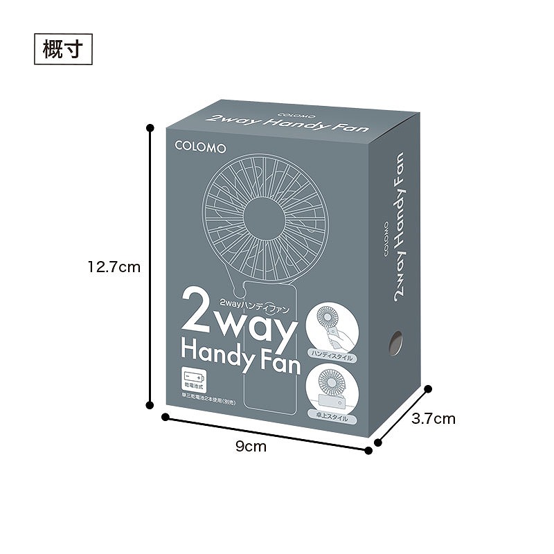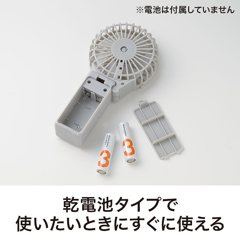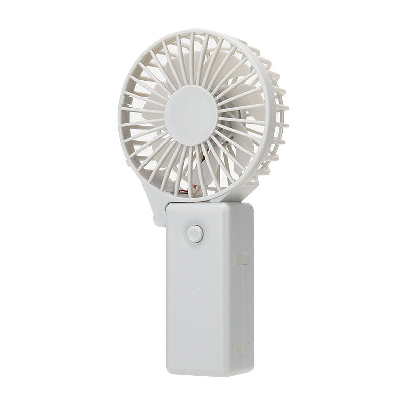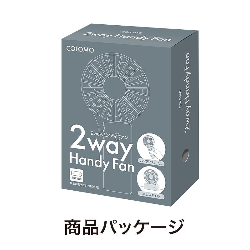 「ハンディタイプ」として片手で持って使えるため、屋内外を問わず手軽に涼しさを感じられます。 シンプルな構造で持ち運びもしやすく、外出先でもストレスなくお使いいただけます。 ファン部分の下で折り曲げると「卓上タイプ」として使用可能。 机やテーブルの上に置いて使えるので、両手を自由に使いながら涼しく快適に過ごせます。 底面には滑り止めが付いており、安定して設置できるのもポイントです。 単三乾電池2本で動作するため、使いたいときにすぐ使える手軽さも魅力。 ファンカバー中央や柄の部分には名入れも可能で、企業ロゴなどを入れたオリジナルグッズとしても活用できます。 アウトドアイベントやお祭り、住宅展示場などでの配布品・景品としておすすめです。