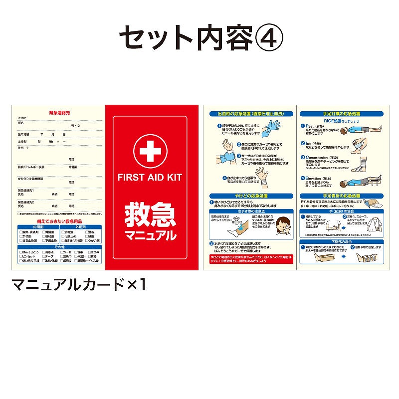ボトル/PS・PP マニュアルカード/紙 PBT包帯/PBT サージカルテープ/ポリエステル ばんそうこう/塩化ビニール とげ抜き/ステンレス鋼 圧縮不織布タオル/ポリエステル マスク/PP