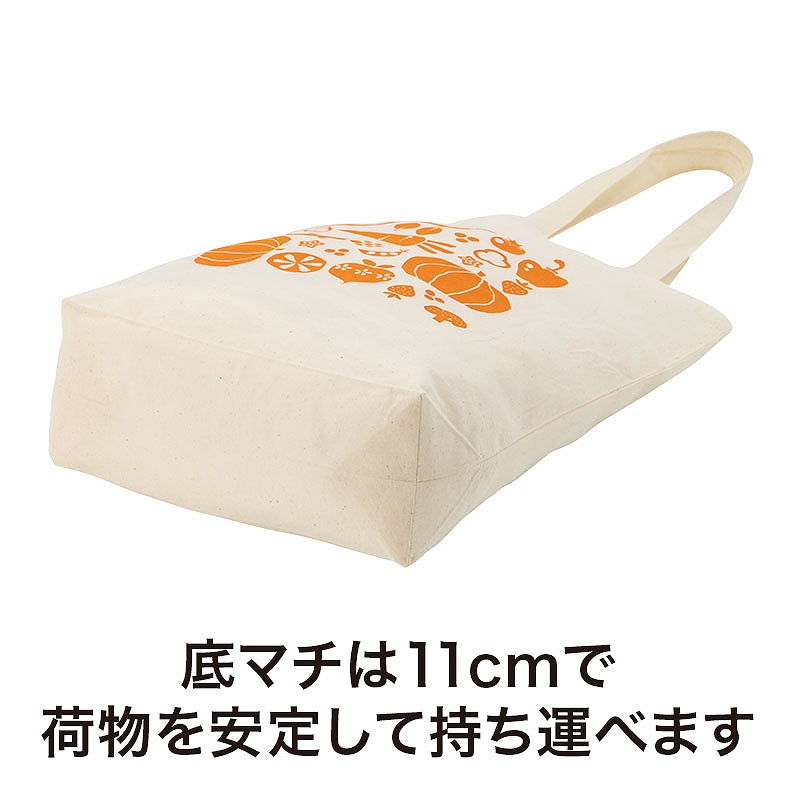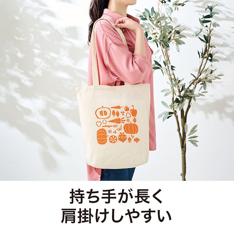 数量限定の特別感のあるアイテムです。 肌ざわりのよいコットン素材を使用し、4オンスの程よい厚みで使いやすい仕様。 底マチは約11cmあり、見た目以上の収納力でたっぷり荷物を入れることができます。 持ち手は長めに設計されているため肩掛けもしやすく、荷物が多くなっても安心です。 通勤・通学時のサブバッグとしてはもちろん、日ーのお買い物やお散歩用のエコバッグとしてなど、日常使いにも活躍します。 裏面は無地仕様なので名入れにも対応しており、企業名やロゴを印刷すればPR効果の高いオリジナルバッグとして活用できます。