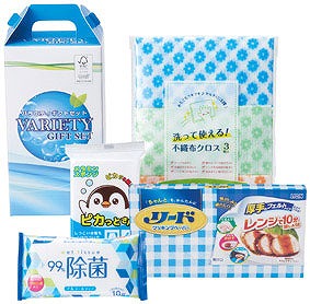 セット内容/洗って使える!不織布クロス3枚入・ピカ王ミニ・リファイン除菌ポケットウェット10枚入(アルコール)・リードクッキングペーパー4枚箱入