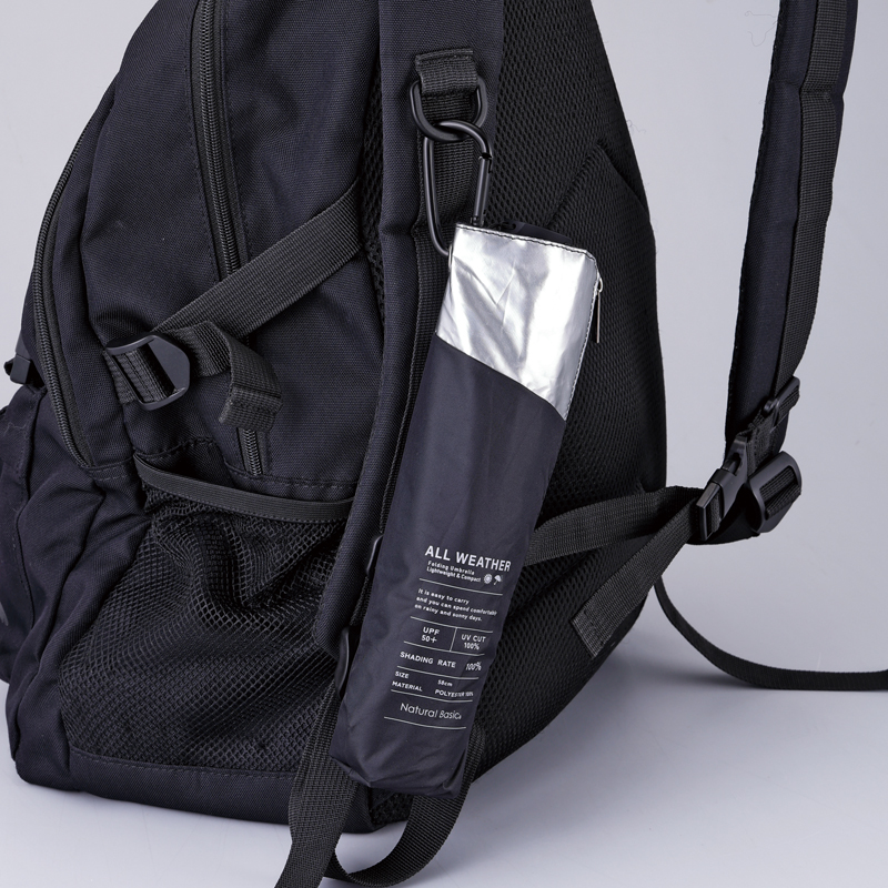 生地:ポリエステル (ポンジー) 中棒・骨:アルミニウム、鉄、グラスファイバー ハンドル:ABS樹脂