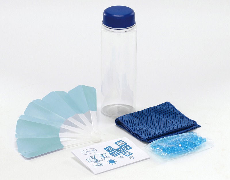 ボトル・扇子・クールタオル・保冷剤・暑さ対策の手引き×各1