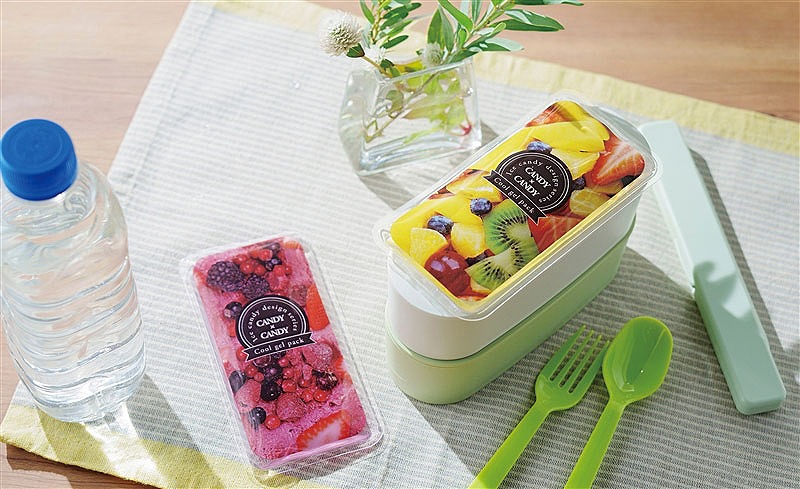 夏場の外出時はもちろん、長方形の形がお弁当箱にもちょうどいい♪思わず見せたくなるような鮮やかなデザインが魅力です。