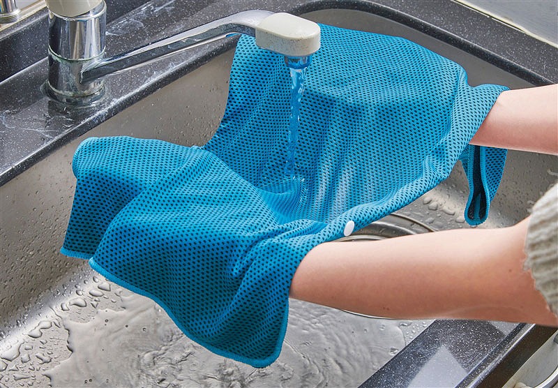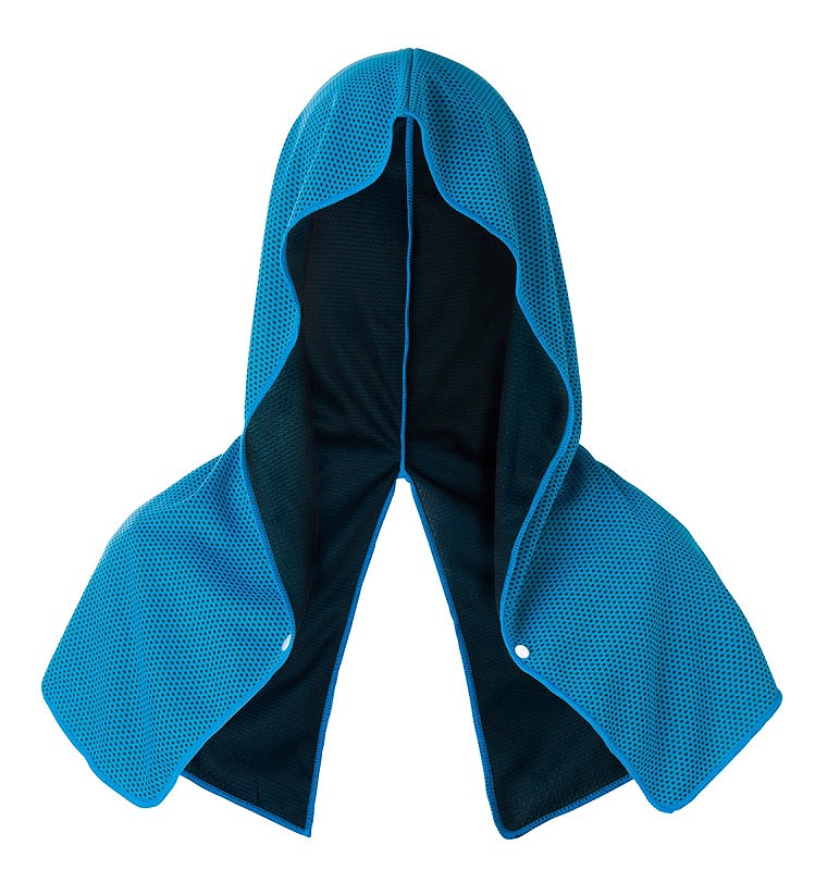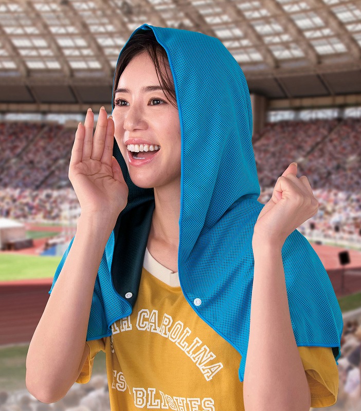 水に濡らしてしぼってクールダウン。日差しのほか、急な雨のときもサッとかぶれる!ジョギングやスポーツ観戦時にも大活躍です。フロントのボタンでずれずに快適。お子様の公園遊びに付き添うママたちにも。