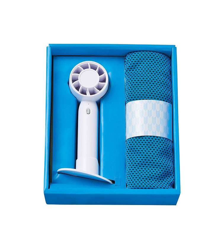 2WAYスマートハンディーファン/約5×4.8×15.3cm(手持ち使用時) 約5×7.5×16.2cm(卓上使用時) クールタオル/約90×30cm