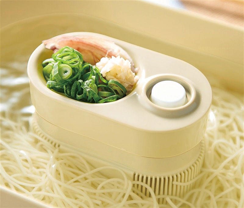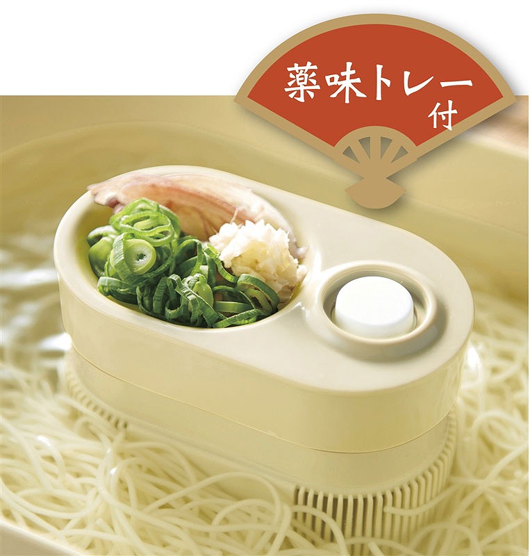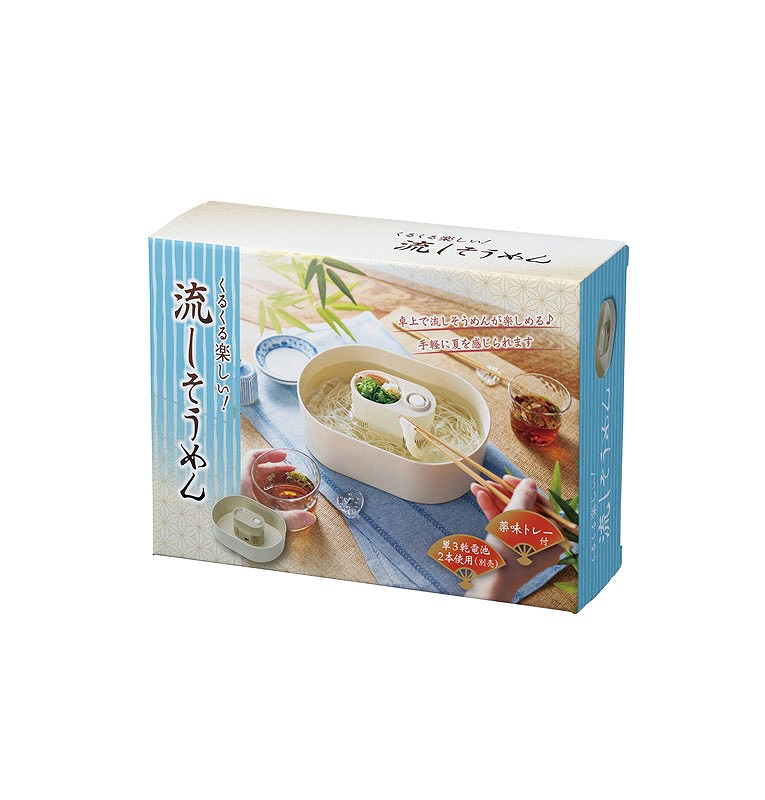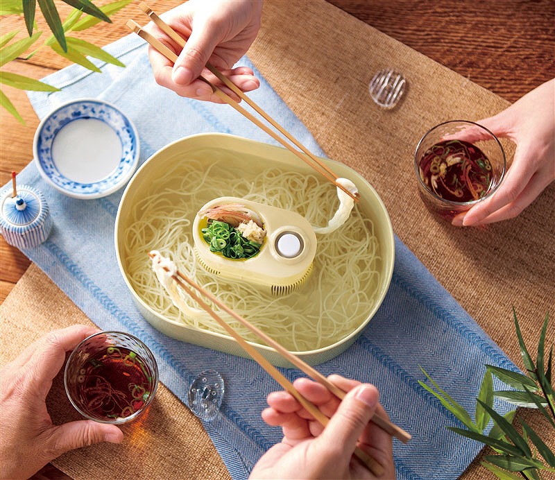 お子さまはもちろん、大人だって楽しい!思わず笑顔で会話も弾む、夏の風物詩・流しそうめんを手軽にご家庭で楽しめます。中央の薬味トレーには、何を載せますか?
