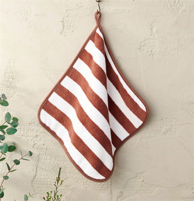 やわらかな手ざわりで乾きやすいマイクロファイバー製のウォッシュタオルです。吊り下げられるループ付きなので、洗面所やベビーカーなどでも使いやすい。
