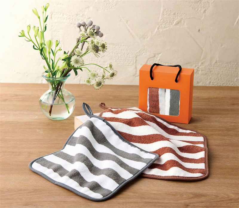 <セット内容> ハンドタオル(グレーストライプ)×1 ウォッシュタオル(ブラウンストライプ)×1