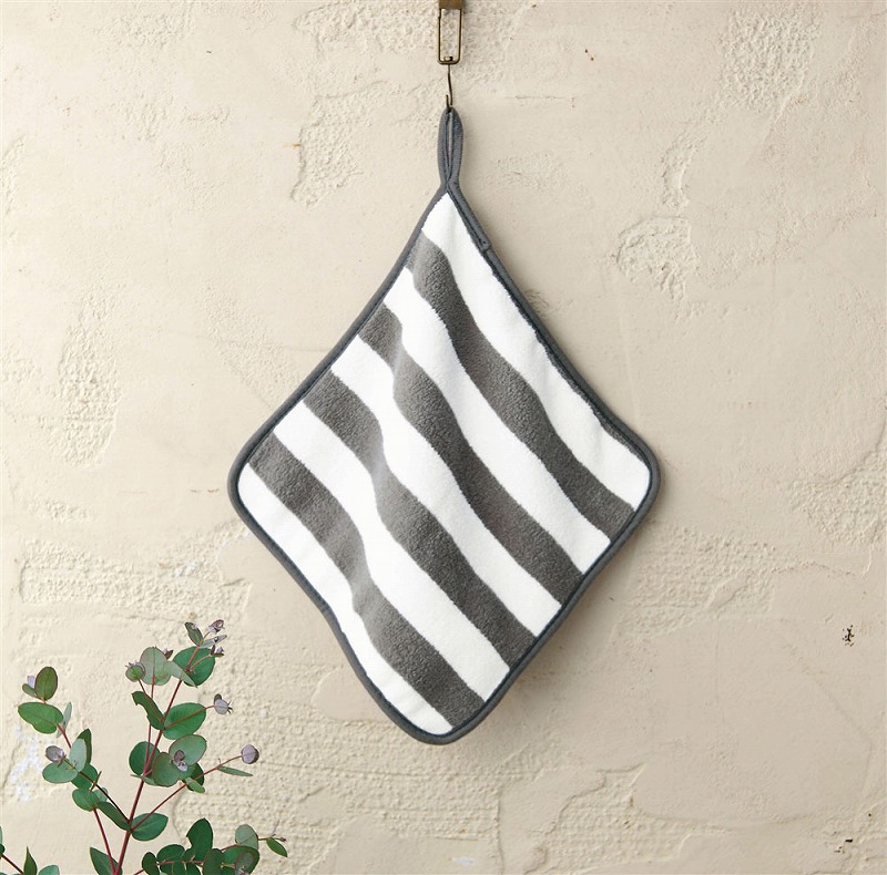 やわらかな手ざわりで乾きやすいマイクロファイバー製のハンドタオルとウォッシュタオル。家族とおそろいで使える2枚セットです。どちらも吊り下げられるループ付きなので、洗面所やベビーカーなどでも使いやすい。