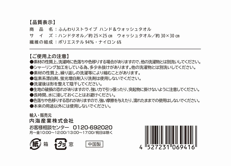 ハンドタオル/約25×25cm ウォッシュタオル/約30×30cm