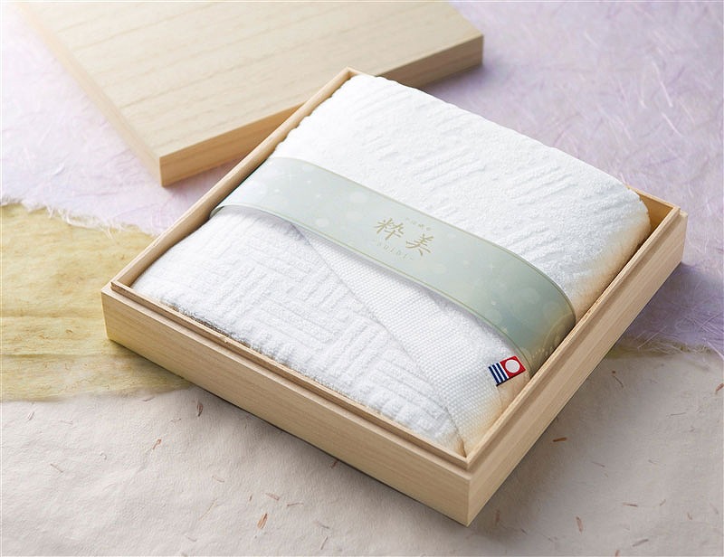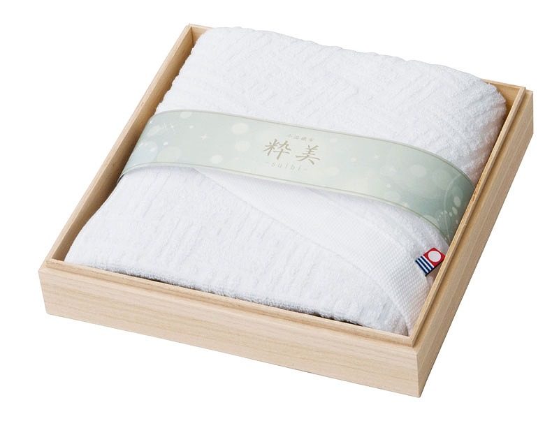 「粋美(すいび)」とは、混じりけがなく美しいさまを表しています。綿本来の美しい白さとやわからさ、吸水性を引き出します。安心の今治タオル。