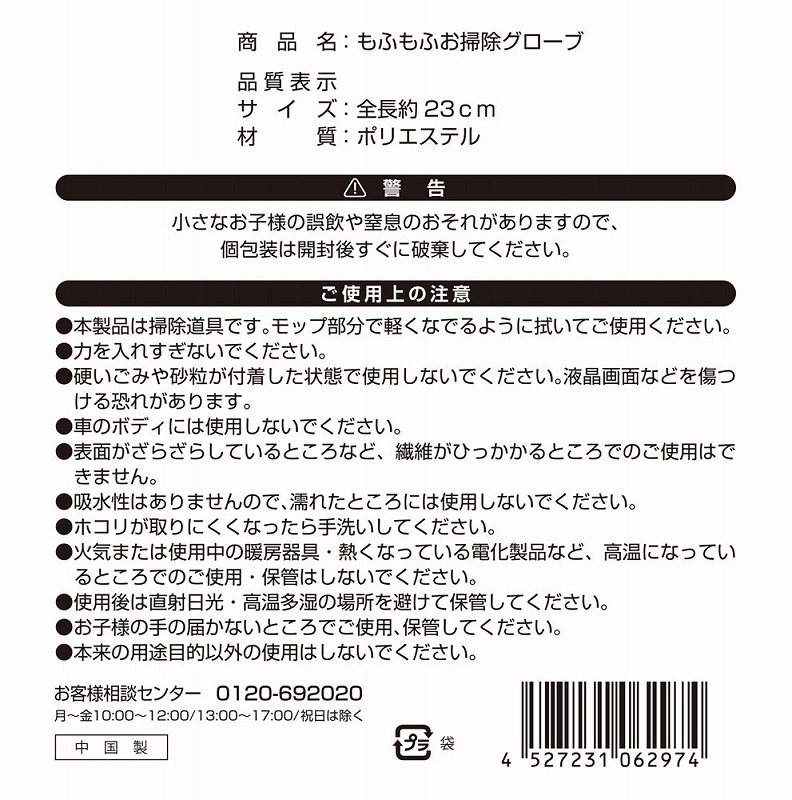 ”販促品 ノベルティ グッズ” 『もふもふお掃除グローブ1個』