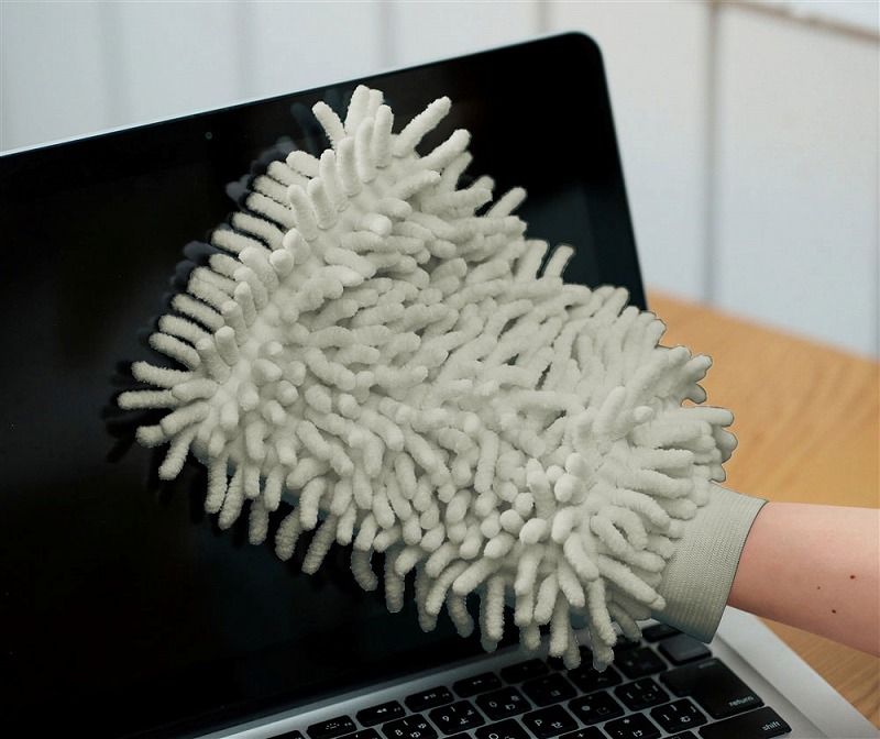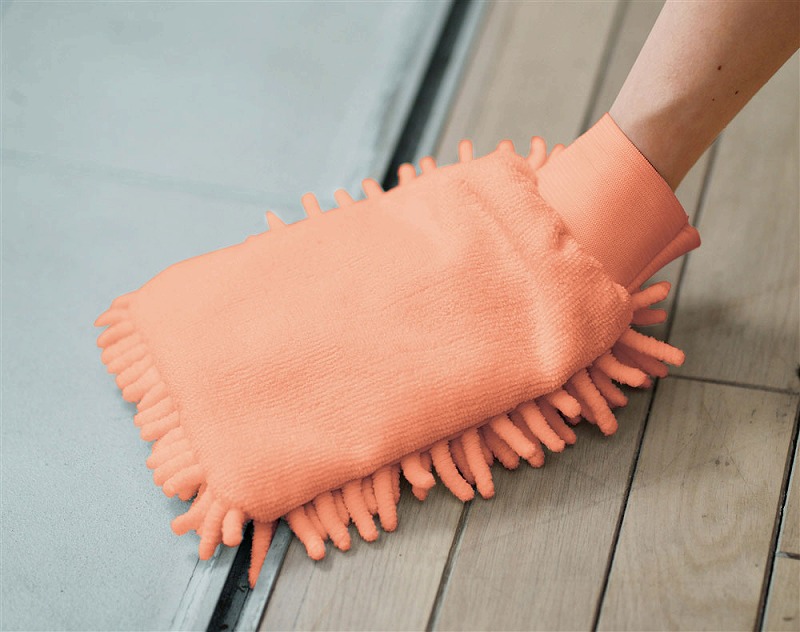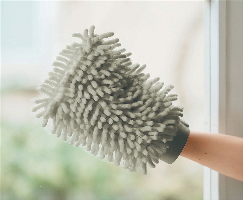 水回りや液晶の拭き掃除にぴったりのマイクロファイバー製。手にはめて、照明や窓、サッシなどもグイグイ拭けます!