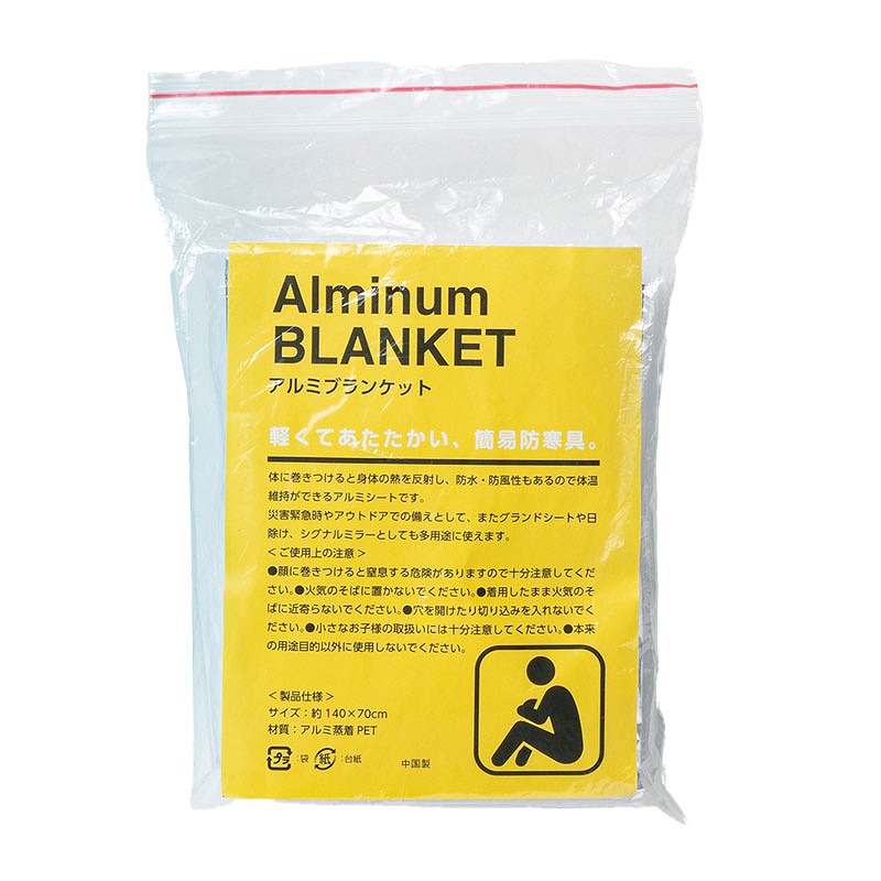ウォーターボトル/AS樹脂・ポリプロピレン・ポリエチレン カラビナキーホルダー/アルミニウム アルミブランケット/アルミ蒸着PET ホイッスル/ポリスチレン・ポリプロピレン LEDハンディライト/ポリプロピレン 黒ビニール袋/ポリエチレン