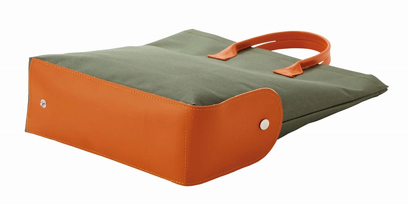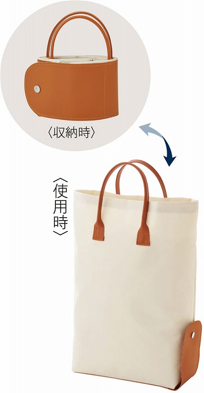 ショッピングや通勤のサブバッグなどに最適な折りたたみトートバッグ。5色展開でおしゃれなデザインが街角になじみます。名入れ印刷も可能で、販促やノベルティに最適。A4サイズも収納可能です。イベントやキャンペーンでの配布におすすめです。コンパクトにまとめられるので、いつでも持ち運びが便利です。