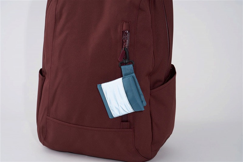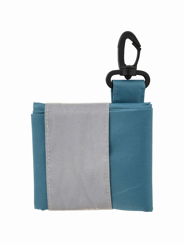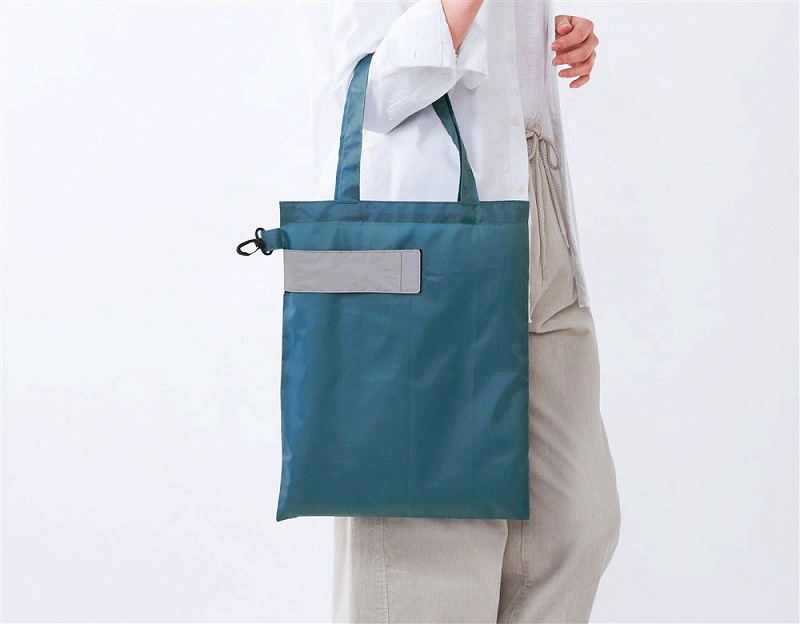 A4サイズが入るエコバッグは小さく折りたためて携帯にも便利。暗くなると、たたんだ状態でもリフレクターが光ります。どこでも取り付けられるカラビナ付き。シニア層も抵抗なく持てるベーシックな4色の中から色指定が可能です。
