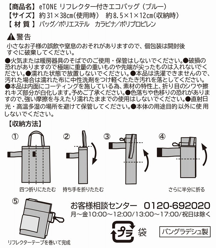 ”販促品 ノベルティ グッズ” 『eTONE リフレクター付きエコバッグ(ブルー)』