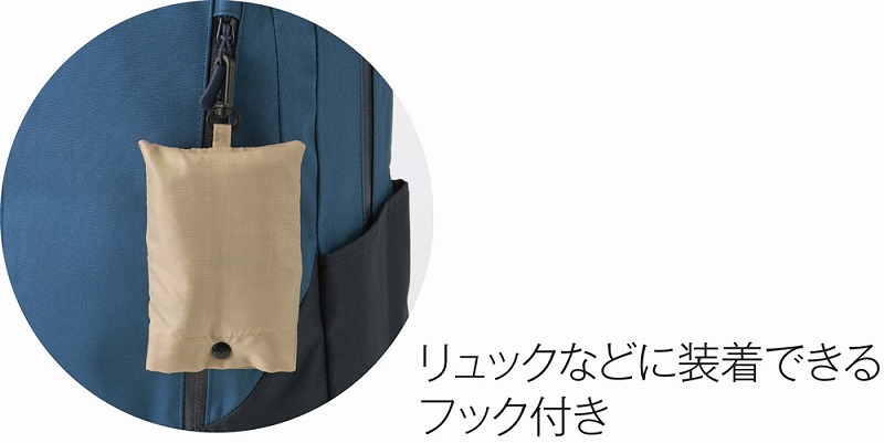 小さくたためてリュックなどにも装着できるフック付き。大人でも抵抗なくタウンユースできるベーシックな4色の中から単色指定が可能です。もちろん名入れもおまかせください!コストパフォーマンスにもご注目。