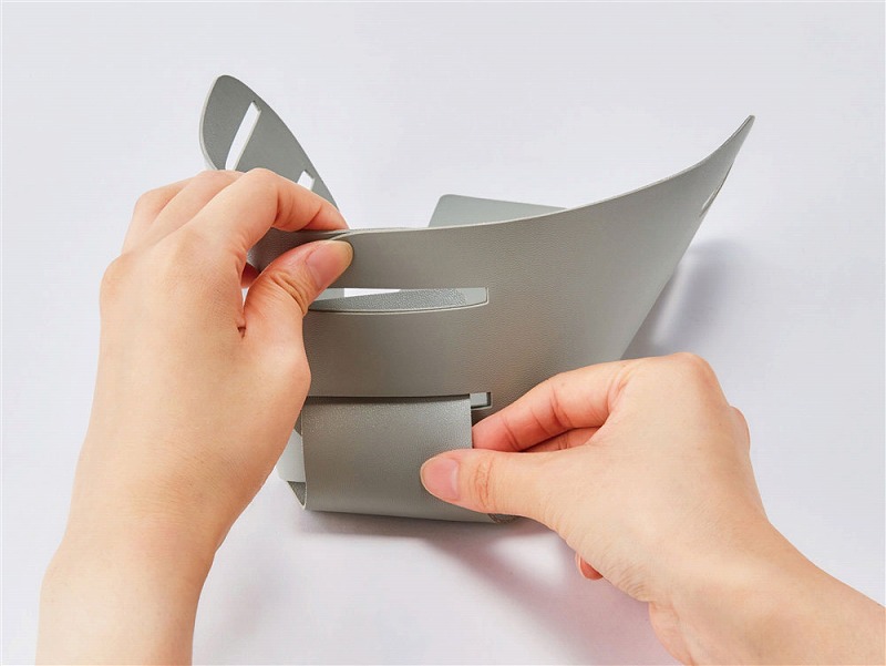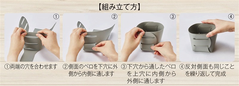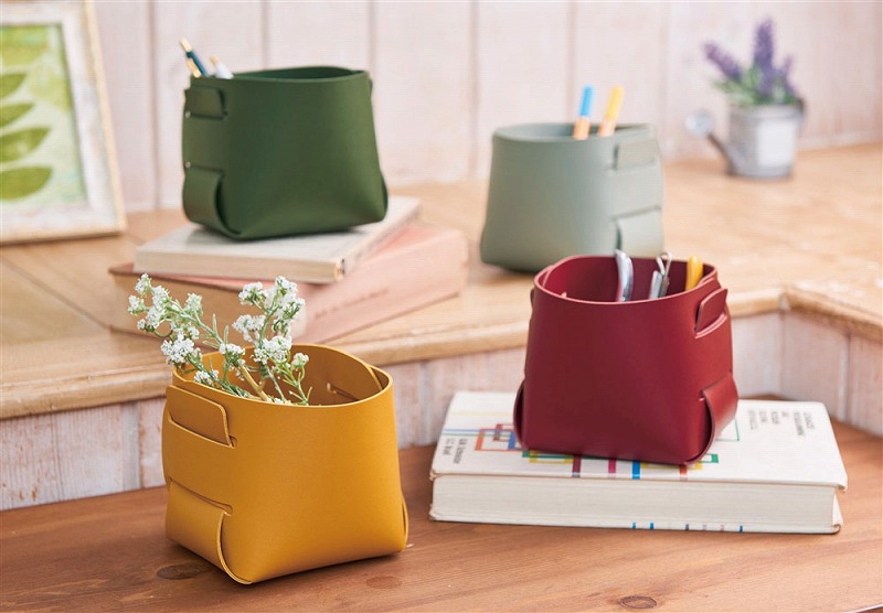 一枚生地を組み立てて作るミニコンテナです。ペンやスマホ、小物の収納に便利。納品時はフラットな状態なので、持ち運びや発送時もかさばりません。型押しや名入れ印刷にも対応し、展示会の来場記念品などにおすすめ。デスク周りやリビングの整理整頓だけでなく、空間のアクセントにもなるおしゃれアイテムです。