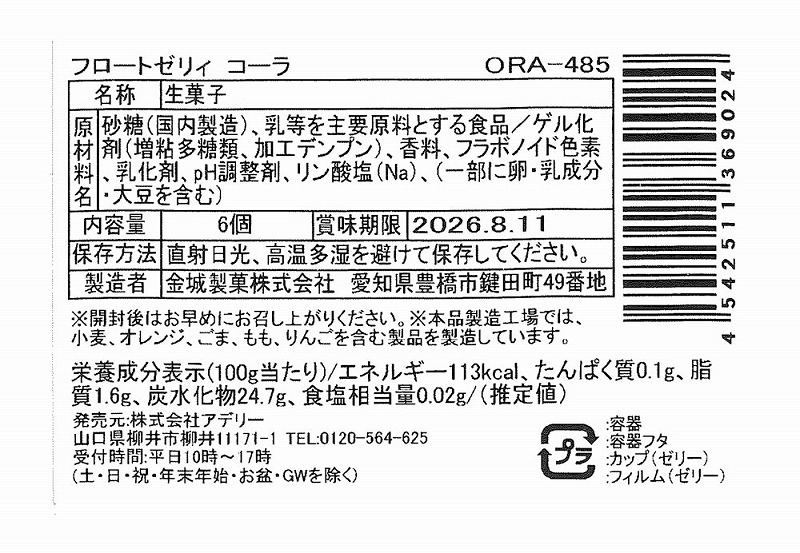 <セット内容> プチコーラフロートゼリー×6