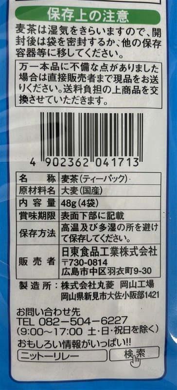 <セット内容> 麦茶ティーパック12g×4袋