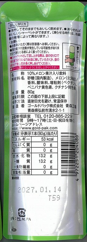 ”記念品 ギフト” 『NIPPONフルーツバー 北海道メロン80g』