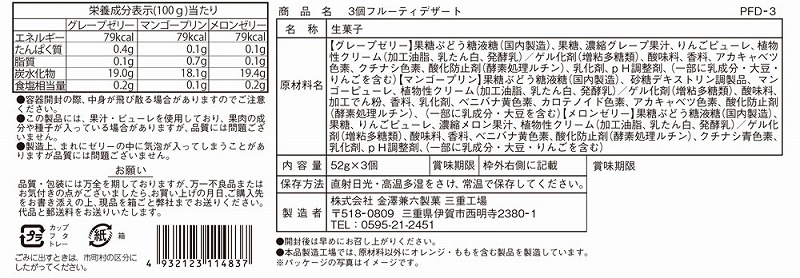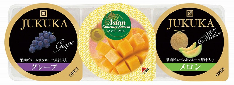 <セット内容> マンゴープリン・熟果ゼリーグレープ・熟果ゼリーメロン各52g×各1