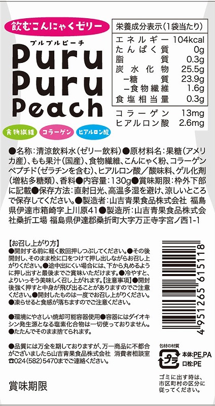 ”記念品 ギフト” 『飲むこんにゃくゼリー プルプルピーチ130g』