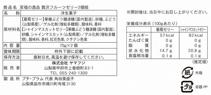 <セット内容> 山梨県産シャインマスカットゼリー×1 山梨県産葡萄ゼリー×1