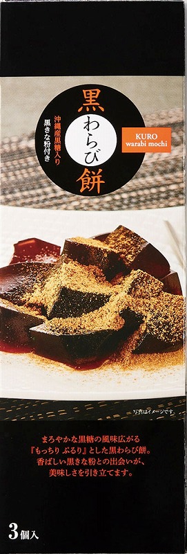 沖縄県産黒糖入り黒蜜を加えたわらび餅に、五つの黒の素材をブランドしたきな粉を合わせました。身体に嬉しい黒の素材5種類(黒米・黒豆・黒ゴマ・黒松の実・黒かりん)をブレンドした黒きな粉と、沖縄県産黒糖入り黒蜜を使用した優しい甘さのわらび餅との贅沢なコラボレーション。