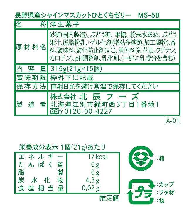 長野県産シャインマスカット ひとくちゼリー15個入
