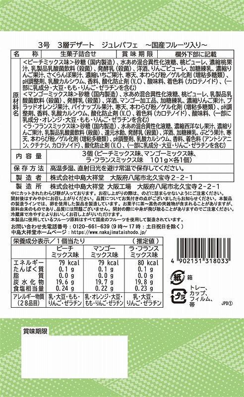 <セット内容> ピーチミックス味、マンゴーミックス味、ラ・フランスミックス味各101g×各1