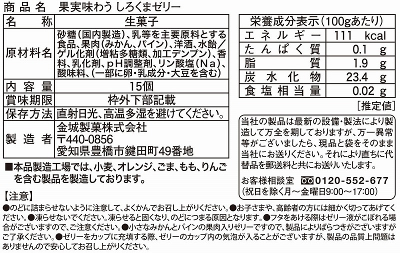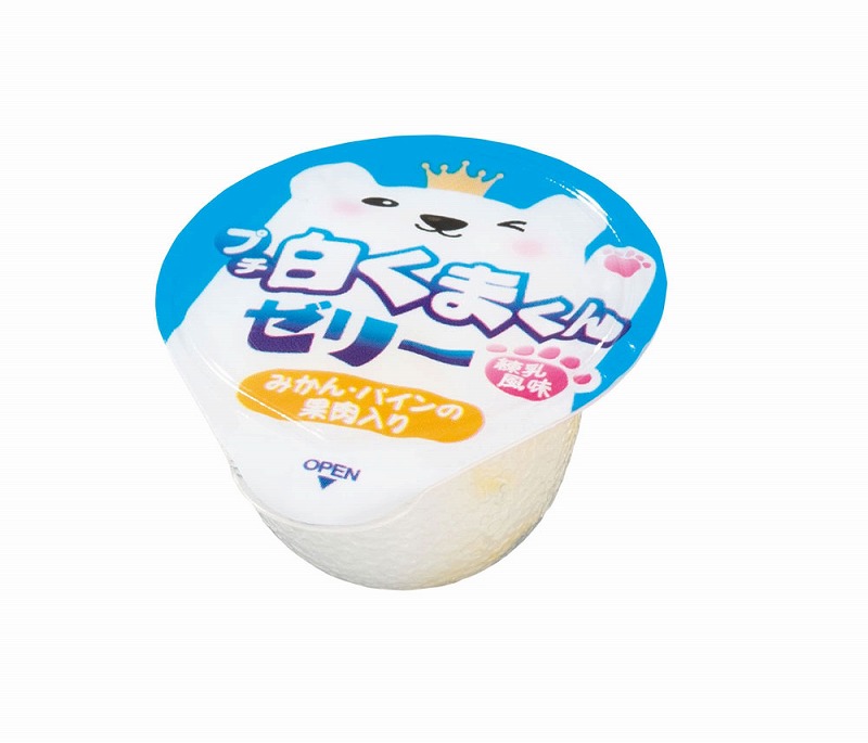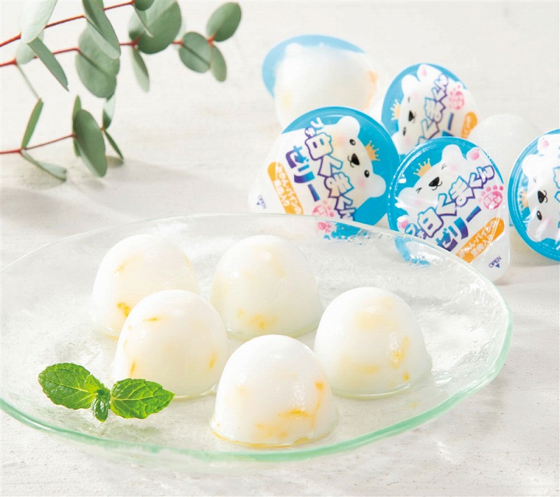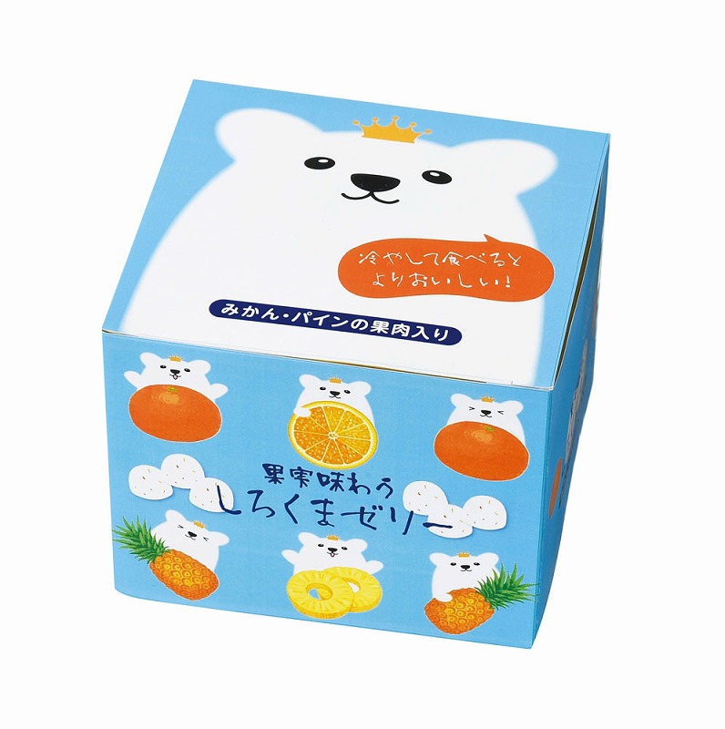 冷やしたり凍らせて食べると、またひと味違った味わい方も楽しめます。しろくまを全面に表現した可愛らしいパッケージも魅力的です。立方体に近いので、積み重ねればディスプレイ効果も。ひとくちサイズのポーションゼリーながら、そのボリューム感と小ロットも魅力の一品です。