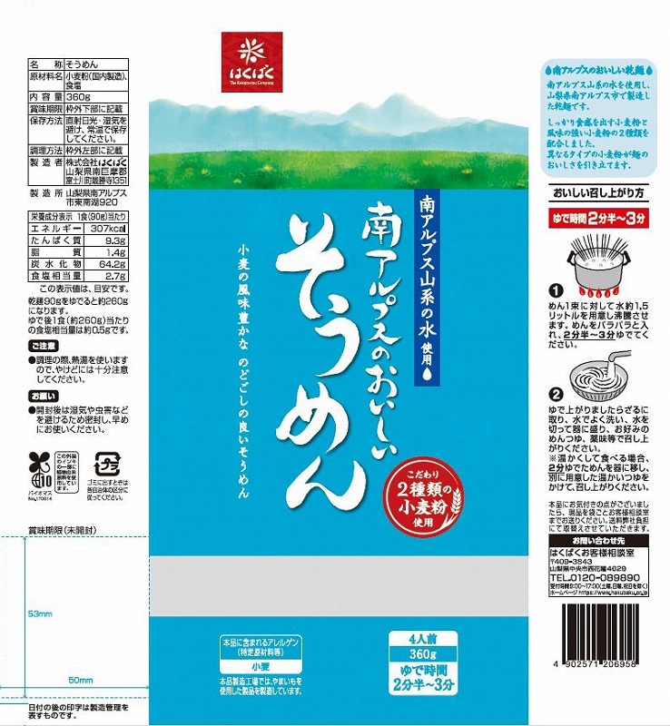 しっかり食感を出す小麦粉と風味の強い小麦粉の2種類を配合しました。異なるタイプの小麦粉が麺のおいしさを引き立てます。小麦の風味豊かなのどごしの良いそうめんです。