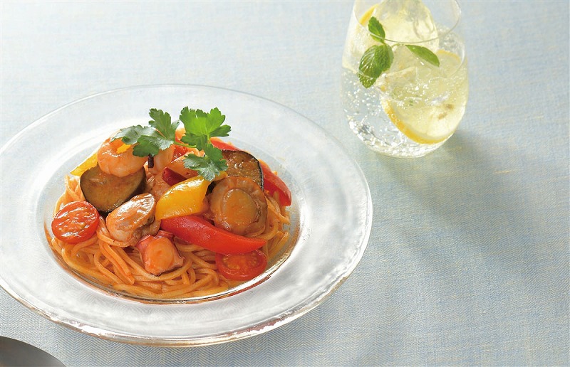 さっぱりとしたトマトの酸味と旨味が際立つ夏の定番パスタ!なすやパプリカなどの夏野菜と一緒にどうぞ。