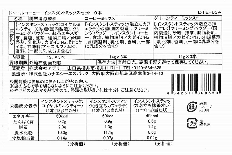 ドトールコーヒー インスタントミックスセット9本