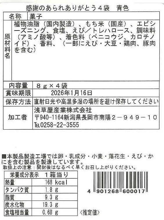 <セット内容> ふんわりえび塩味8g×4袋