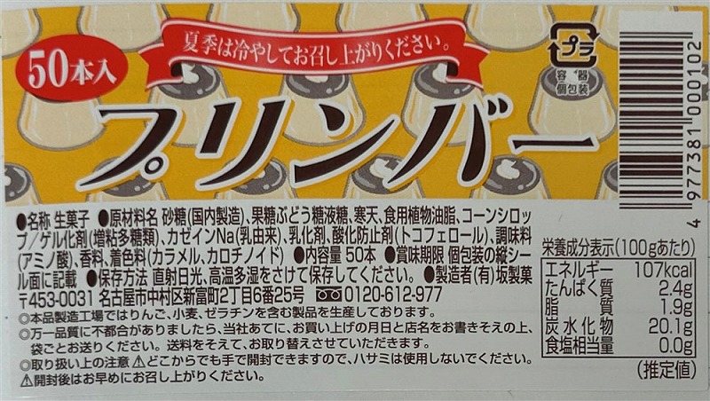 ”イベント 縁日 催物 抽選会” 『プリンバー50g1本』