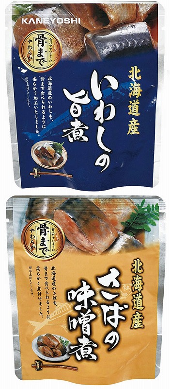 <セット内容> いわしの旨煮95g(固形量70g)×1、さばの味噌煮120g(固形量90g)×1