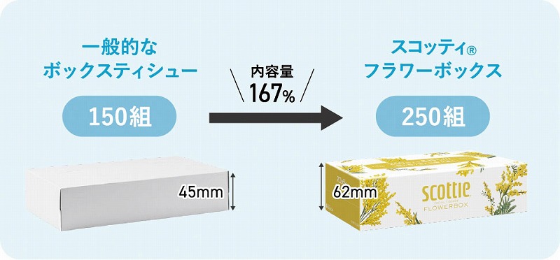 お肌からワイパー使いまで、日常のあらゆるシーンで使えるスタンダード品質。1箱250組入りで長持ちだから、取り替え回数が減らせます。1パックが3箱入りでコンパクトなのに、長持ちのティシュー。つながるサスティナブルで環境課題に貢献。災害時の備蓄にも適しています。
